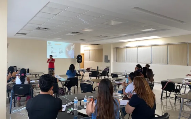 La jornada se desarrolló de manera simultánea en los municipios de Chihuahua y Ciudad Juárez, con la participación de 100 maestras y maestros, quienes fortalecieron sus capacidades pedagógicas y didácticas para comunicarse de manera efectiva.