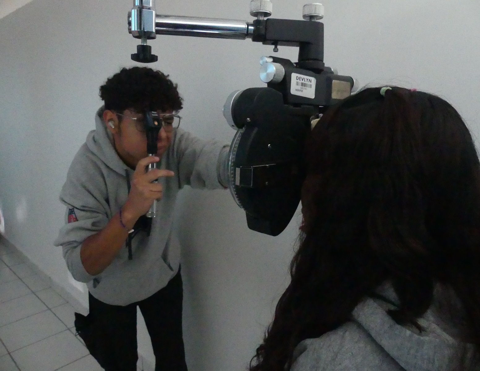 En esta primera etapa participan 30 estudiantes de la carrera de Optometría del Conalep Chihuahua I, mientras que en Ciudad Juárez se suma la participación activa del Conalep Juárez II, donde se realizan exámenes similares.