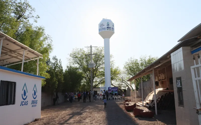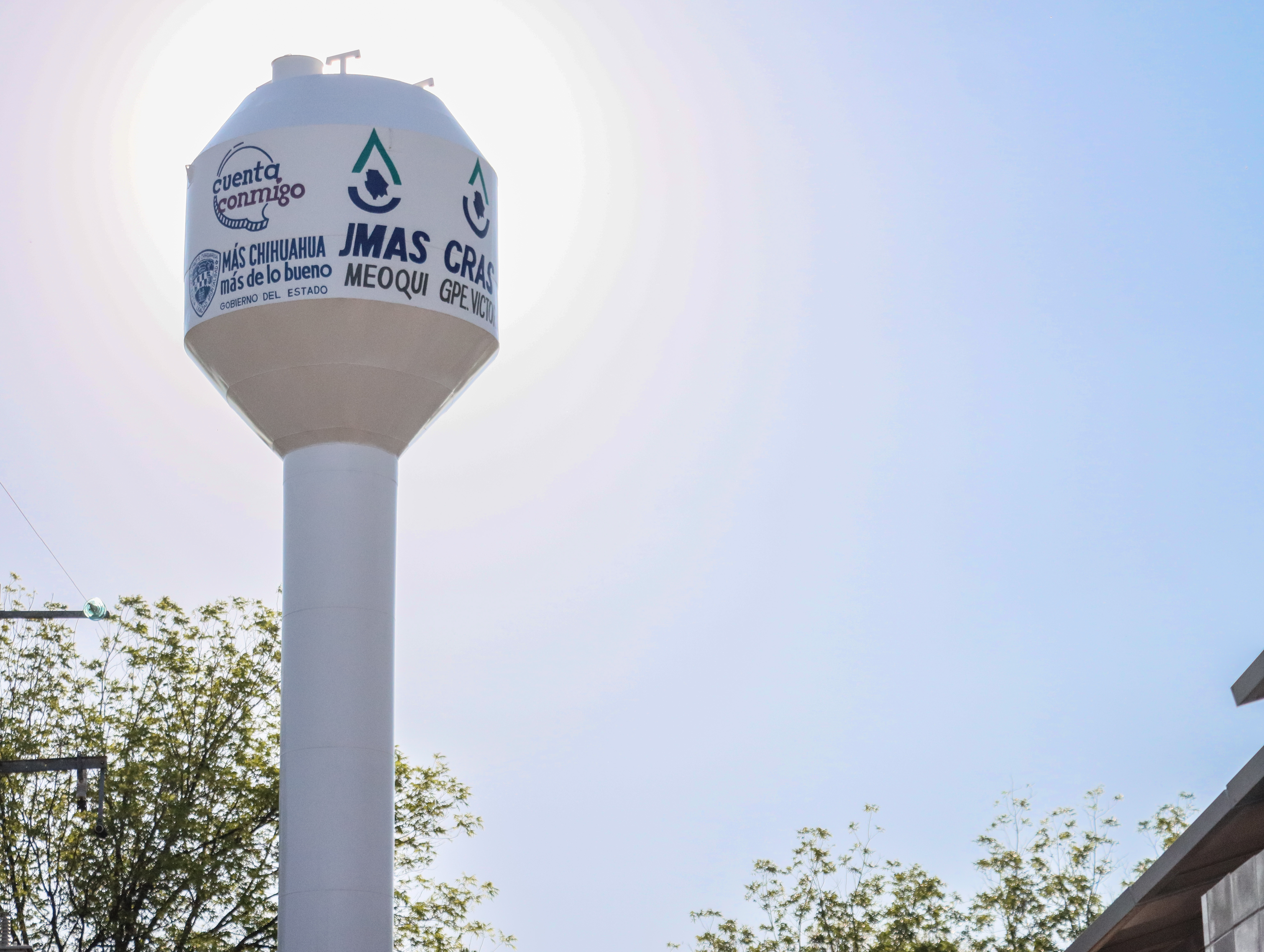 En un esfuerzo conjunto por garantizar el derecho al agua de las y los habitantes de la comunidad de Guadalupe Victoria, la Junta Central de Agua y Saneamiento (JCAS), en coordinación con la Junta Municipal de Meoqui, y el Comité Rural de Agua Potable, inauguró un tanque elevado que fortalecerá el suministro en la zona.