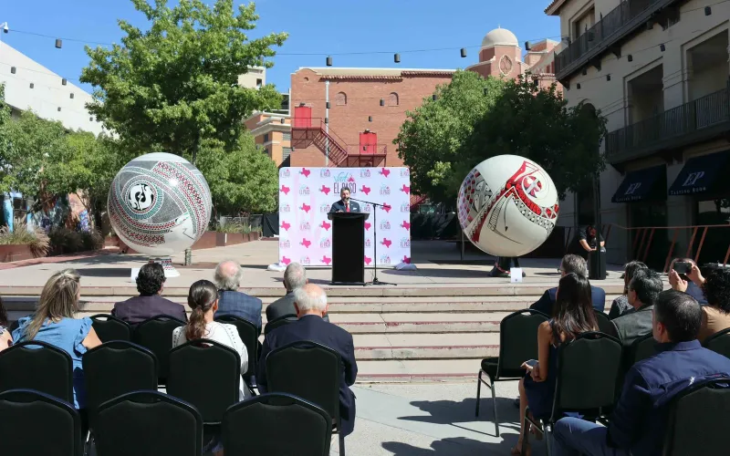 “Invitamos a la gente de El Paso y alrededores a que venga a ver esta obra, para que conozcan la cultura paquimeita, la chihuahuense y mexicana. Estas dos esferas son símbolo de la unión de los estados y de las ciudades a través del arte”, comentó Gómez Gallegos.