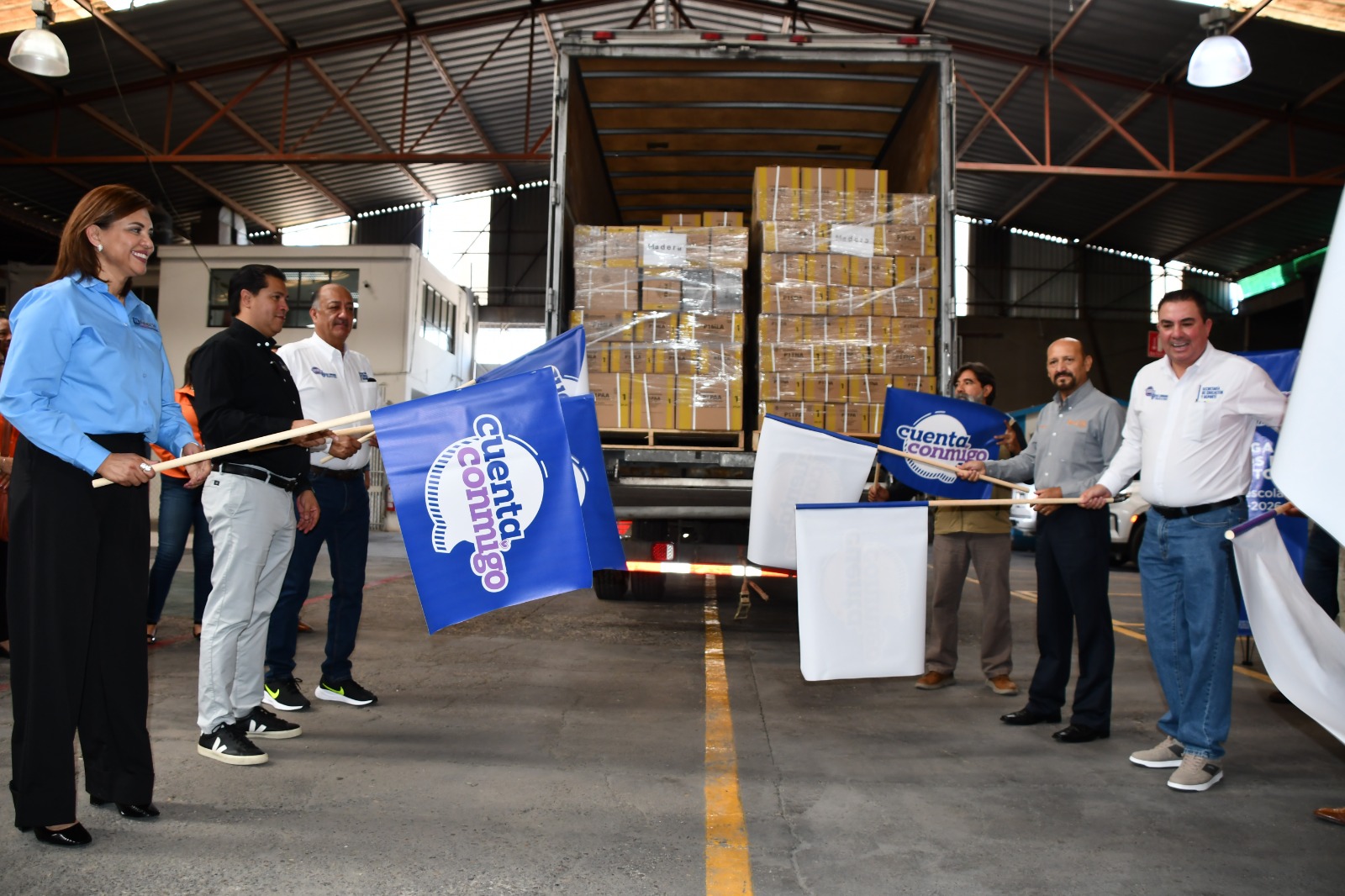 Como parte del acto protocolario, se llevó a cabo el banderazo de salida del primer camión con los materiales para los diversos niveles académicos, en el que se contó con la presencia de diversas autoridades educativas estatales, federales y sindicales.