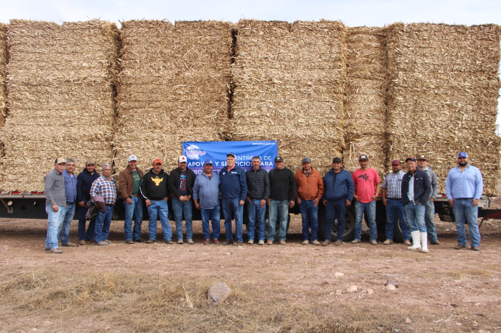 La primera jornada se llevó a cabo en la localidad de Rancho de Enmedio, municipio de Chihuahua, donde fueron otorgadas 200 pacas a integrantes del centro de acopio de leche, Sunilec, en beneficio de los productores que lo abastecen.
