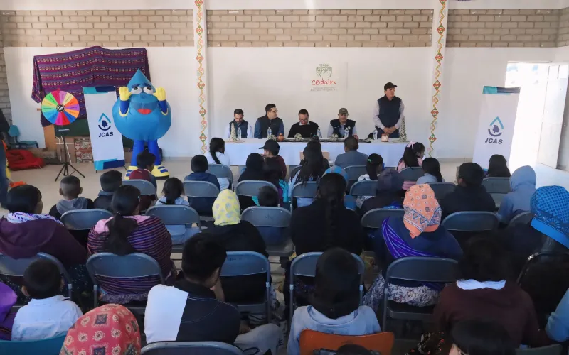 Durante su mensaje, el titular de la JCAS enfatizó que, gracias al trabajo de Cedain y al apoyo del Gobierno del Estado, este año se está llevando a cabo la instalación de nuevas Cosechas de Agua en diversas comunidades de la Sierra Tarahumara.