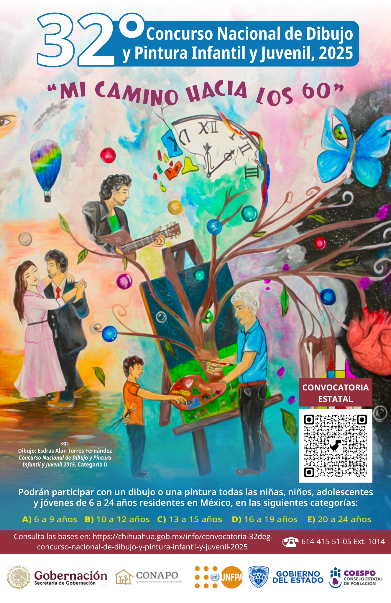 Para más información comunicarse al teléfono (614) 415-51-05, extensión 1014 o 1015, o consultar las redes oficiales de Coespo: https://chihuahua.gob.mx/info/convocatoria-32deg-concurso-nacional-de-dibujo-y-pintura-infantil-y-juvenil-2025