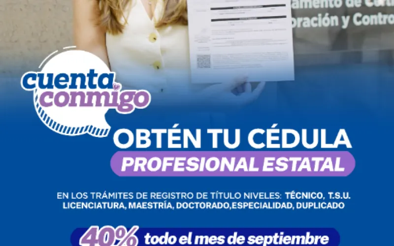 La Secretaría de Educación y Deporte (SEyD), a través de la Dirección Estatal de Profesiones invita a la ciudadanía a aprovechar los últimos días de descuento en el trámite de la cédula estatal, beneficio que estará vigente hasta el martes 30 de septiembre.