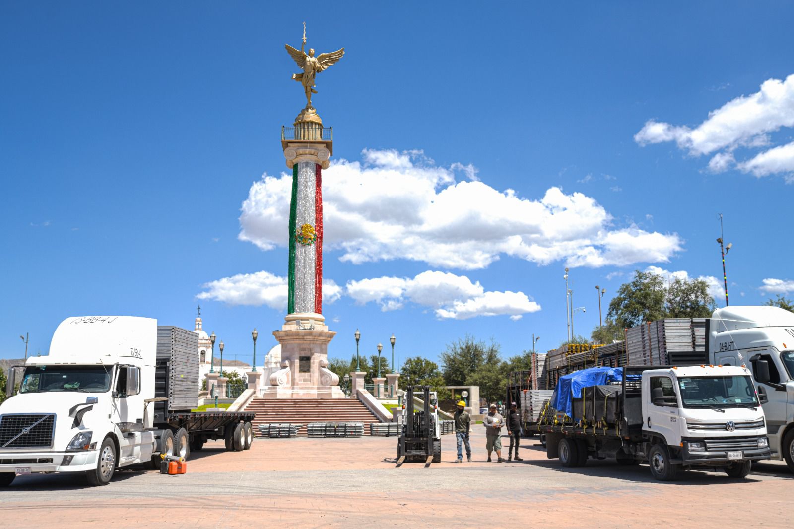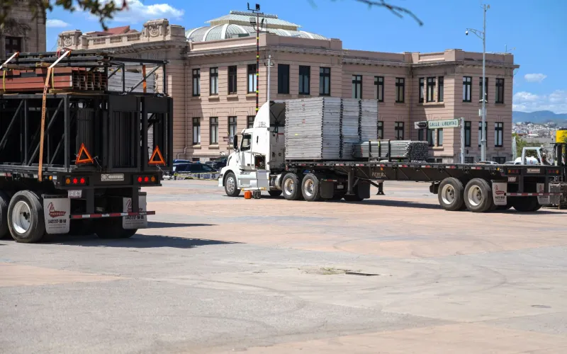 Como parte de los preparativos para la noche mexicana, desde este martes se hicieron los cierres parciales de la calle Aldama para permitir el montaje del escenario.