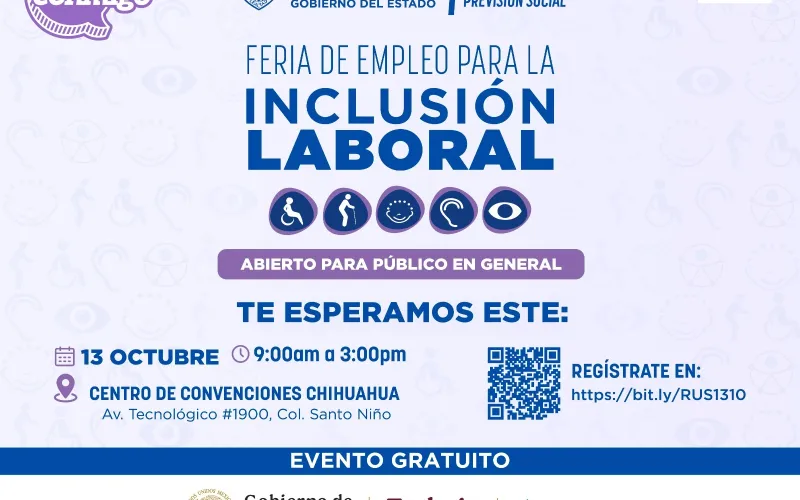 El evento se desarrollará el 13 de octubre de 9:00 a.m. a 3:00 p.m en el Centro de Exposiciones y Convenciones “Expo Chihuahua” y está dirigido a personas de grupos vulnerables, con discapacidad, adultas mayores, en proceso de reinserción social, víctimas de delito, de grupos étnicos, madres solteras, entre otros.