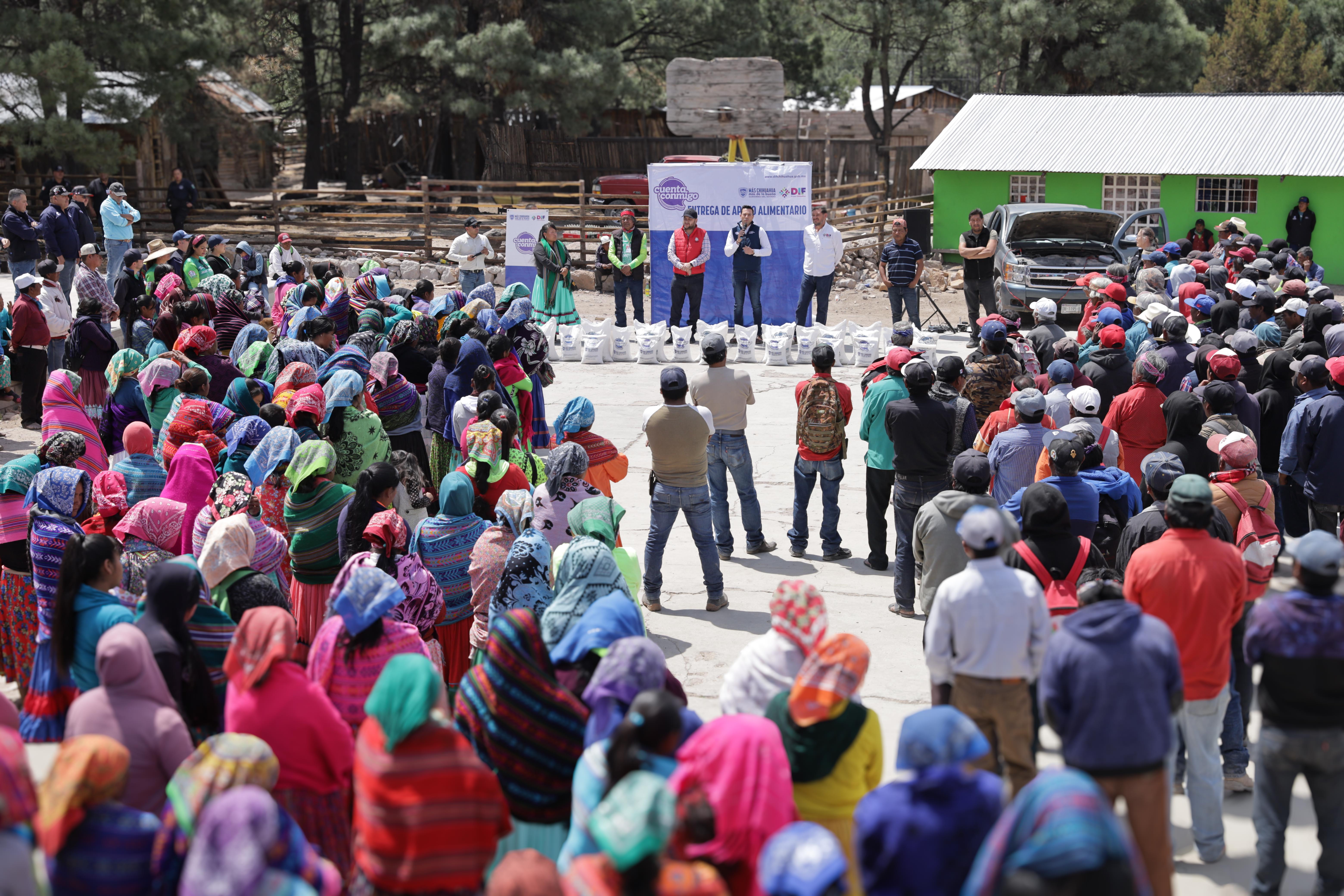 Personal del DIF Estatal y de la Secretaría de Pueblos y Comunidades Indígenas (SPyCI), entregó apoyos alimentarios equivalentes a 84 toneladas, a más de 4 mil 200 familias de distintas comunidades indígenas del municipio de Guachochi.