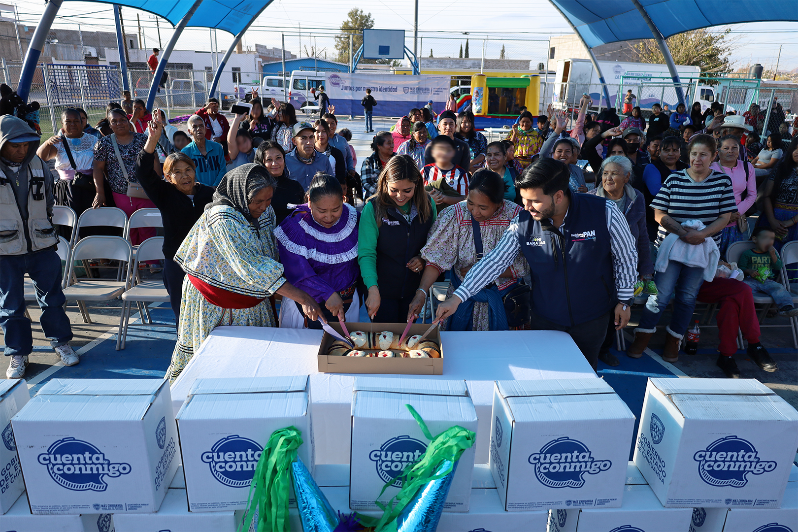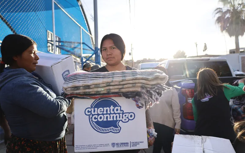 La Secretaría de Pueblos y Comunidades Indígenas (SPyCI), como parte del programa “Juntos por Nuestra Identidad”, entregó 140 despensas y cobijas a familias en la colonia Unidad Proletaria.