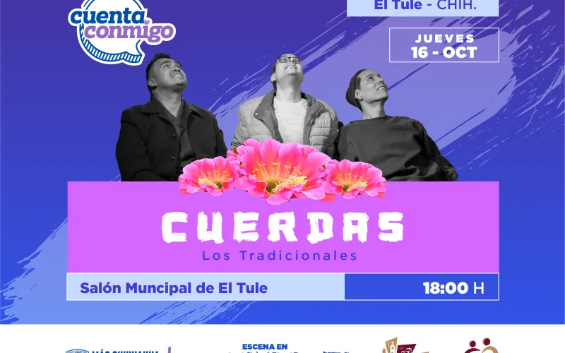 En el municipio de El Tule, la compañía teatral “Los Tradicionales”, representará la obra “Cuerdas” dirigida a niñas y niños de 12 años en adelante y padres de familia el 16 de octubre a las 18:00 horas en el Salón Municipal.