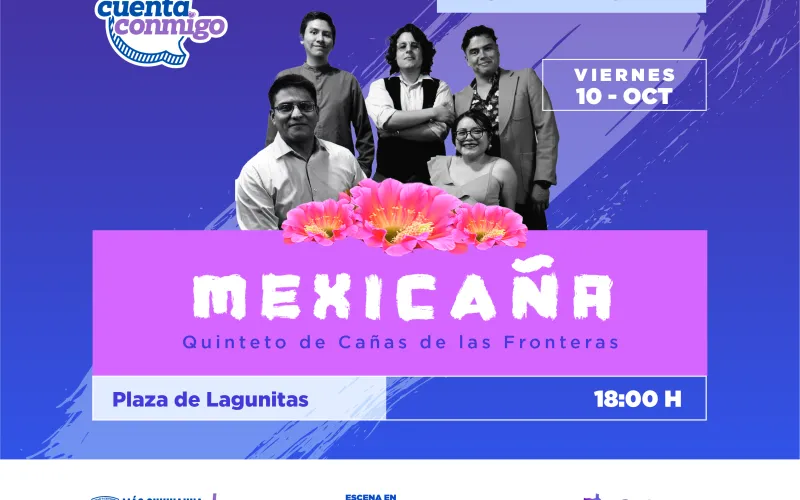 El día 10 de octubre continuarán en el municipio de Galeana, con el Quinteto de Cañas de las Fronteras, que amenizará la Plaza de Lagunitas con su concierto escénico “Mexicaña” a las 6 de la tarde.