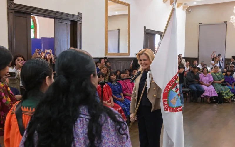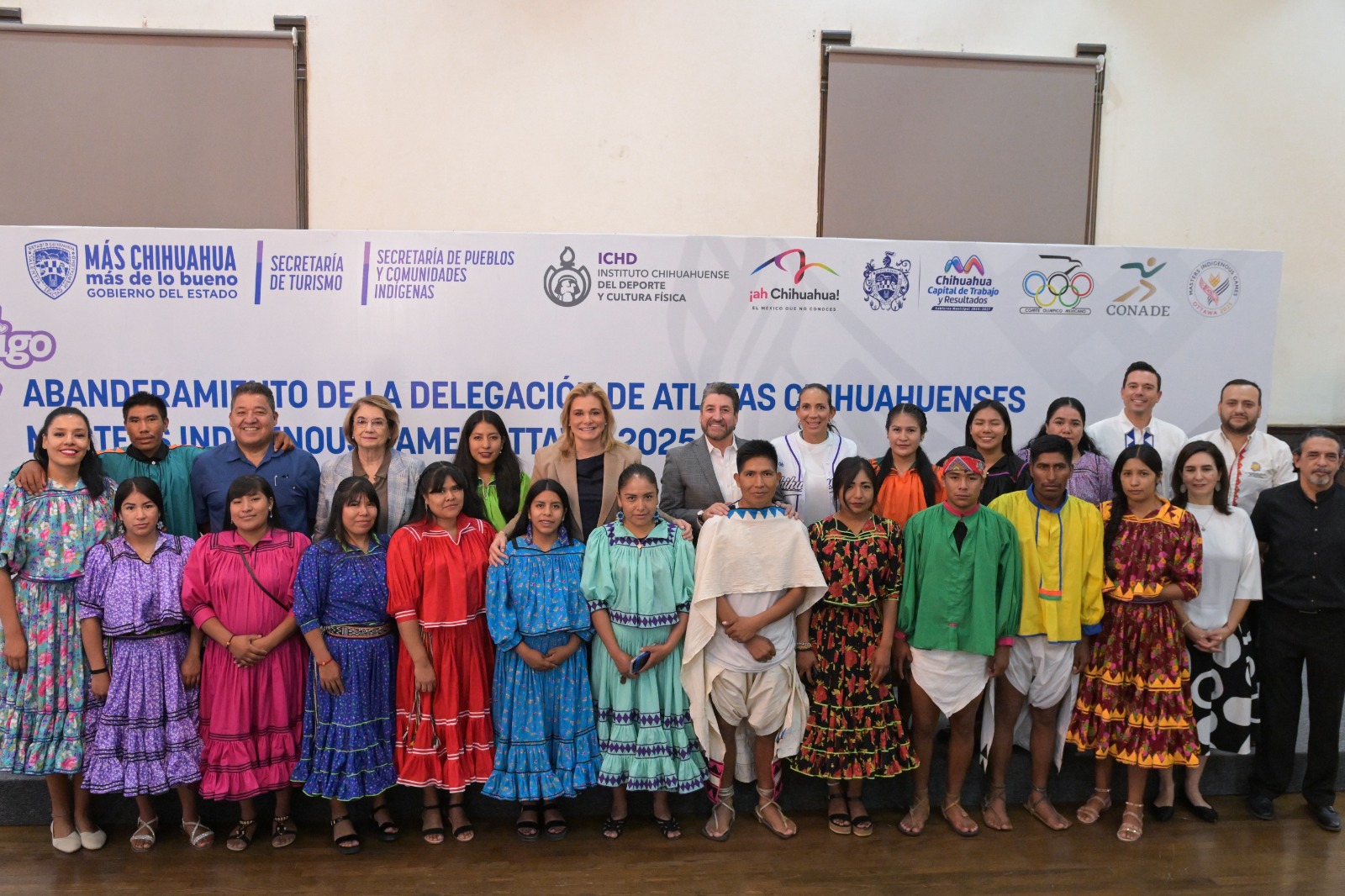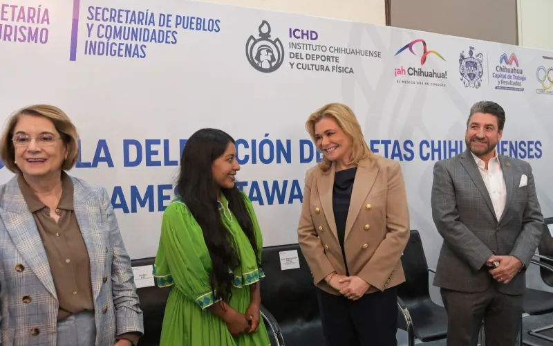 La gobernadora Maru Campos abanderó a la delegación de 18 atletas rarámuri, que participará en la cuarta edición de los Juegos Maestros Indígenas 2025 (ISWO, por sus siglas en inglés), que se llevará a cabo en la ciudad de Ottawa, Canadá