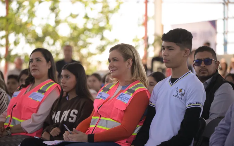 La gobernadora Maru Campos arrancó en la Escuela Secundaria 3044 de la ciudad de Chihuahua el Programa Juntos Construimos, con el que se mejorará la infraestructura de planteles de Educación Básica, en beneficio de 13 mil 989 estudiantes.