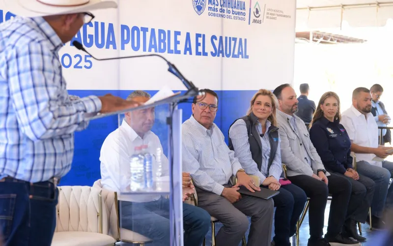 La gobernadora Maru Campos supervisó en Ciudad Juárez los avances de la primera de tres etapas, de la introducción de la Red de Agua Potable en el ejido El Sauzal, que una vez concluida en su totalidad, beneficiará a más de 1,700 familias.