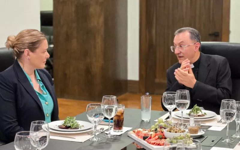 La gobernadora Maru Campos ofreció una comida de bienvenida a Chihuahua, al nuncio apostólico en México, Joseph Spitieri.