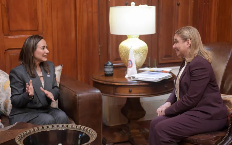 La gobernadora Maru Campos sostuvo esta tarde en Palacio de Gobierno, una reunión de trabajo con la magistrada presidenta del Tribunal Superior de Justicia del Estado, Marcela Herrera, en el marco del trabajo de colaboración que se mantiene entre ambos poderes.
