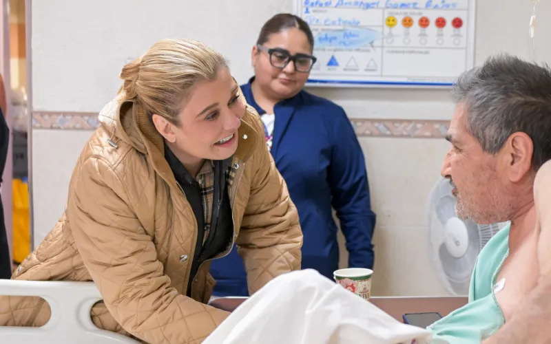 La gobernadora Maru Campos acudió este 25 de diciembre al Hospital General de Ciudad Juárez, con el objetivo de visitar a pacientes y familias que pasaron la Nochebuena en el recinto, así como a quienes atraviesan por situaciones de vulnerabilidad en esta Navidad.
