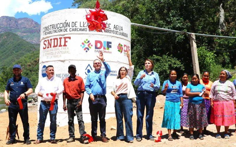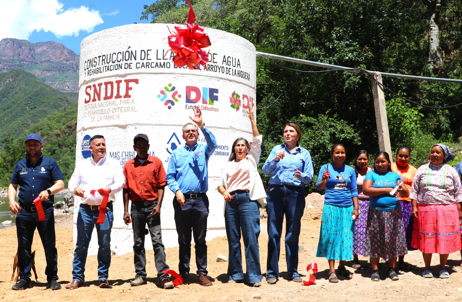 Luego de tres años de trabajo con habitantes de Boca del Arroyo de la Higuera, municipio de Urique, el Gobierno del Estado, a través del DIF Estatal, entregó la obra de rehabilitación del cárcamo de agua para que 22 familias indígenas de la localidad cuenten con abasto hasta sus viviendas, sin tener que acarrear desde el rio.
