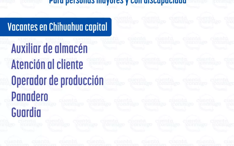 Con el objetivo de promover la inclusión económica de los sectores vulnerables, la Secretaría de Desarrollo Humano y Bien Común (SDHyBC), a través de la Dirección de Grupos Vulnerables, dio a conocer nuevas vacantes laborales en la ciudad de Chihuahua, dirigidas a adultos mayores y personas con discapacidad.