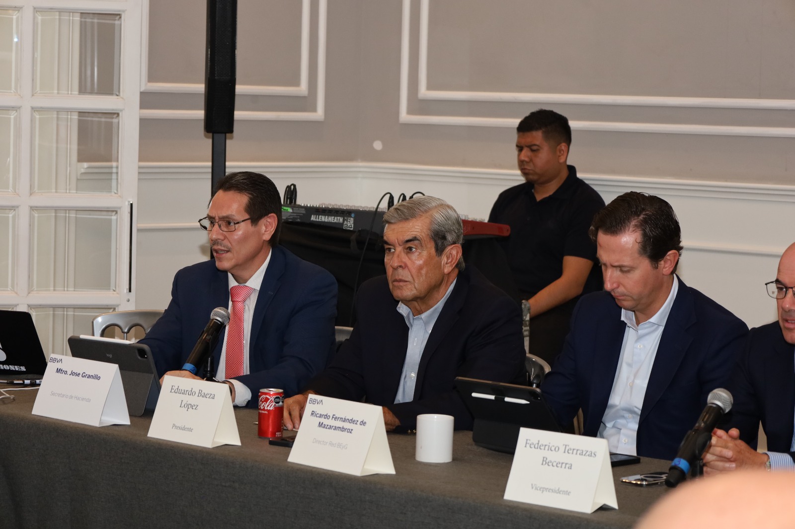 En el marco del Consejo Regional de BBVA, el secretario de Hacienda, José de Jesús Granillo Vázquez y el de Innovación y Desarrollo Económico (SIDE), Ulises Fernández, presentaron los avances en materia financiera y económica en los cuatro años de la administración que encabeza la gobernadora Maru Campos.
