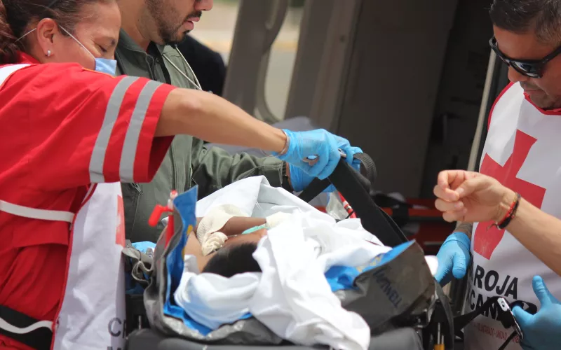 Posteriormente, personal de la Secretaría de Salud, con apoyo de una Unidad de Rescate del Gobierno del Estado (URGE) y Cruz Roja, completó el traslado terrestre de los pacientes; el menor de edad fue ingresado al Hospital Infantil de Especialidades y la mujer al Hospital Central.
