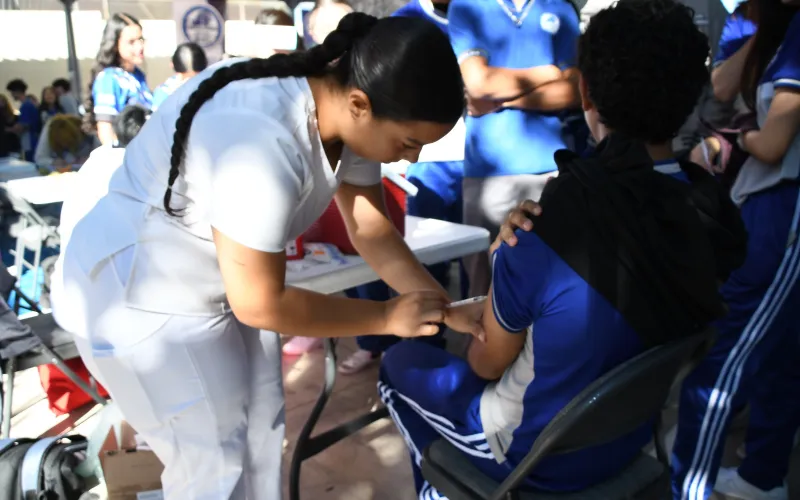 En seguimiento a la estrategia de prevención y erradicación del sarampión, se instalaron módulos para la vacunación de estudiantes, docentes y personal administrativo.