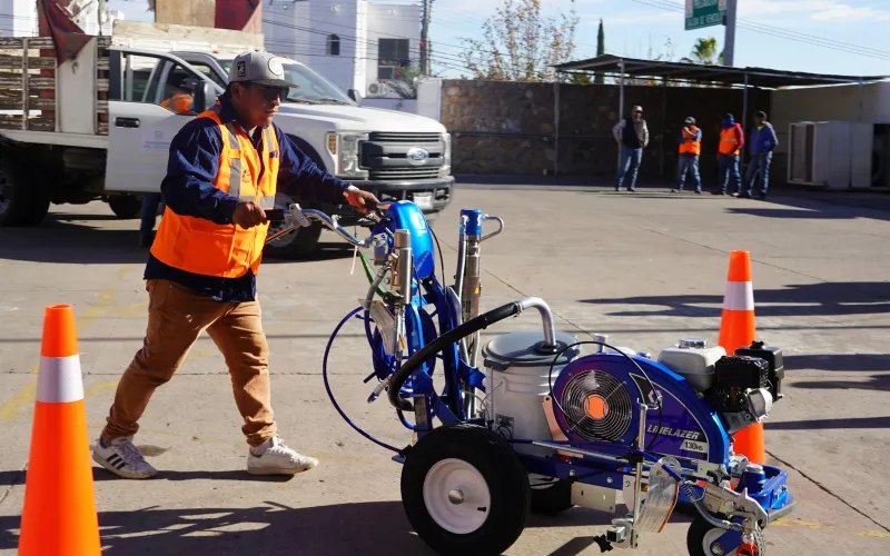 Durante el acto, Jorge Chanez, titular de la dependencia, destacó que contar con este equipamiento permite a la Secretaría reforzar trabajos como la señalización vial mediante pintarrayas y la limpieza de superficies con barredoras.