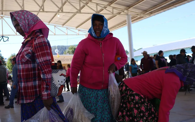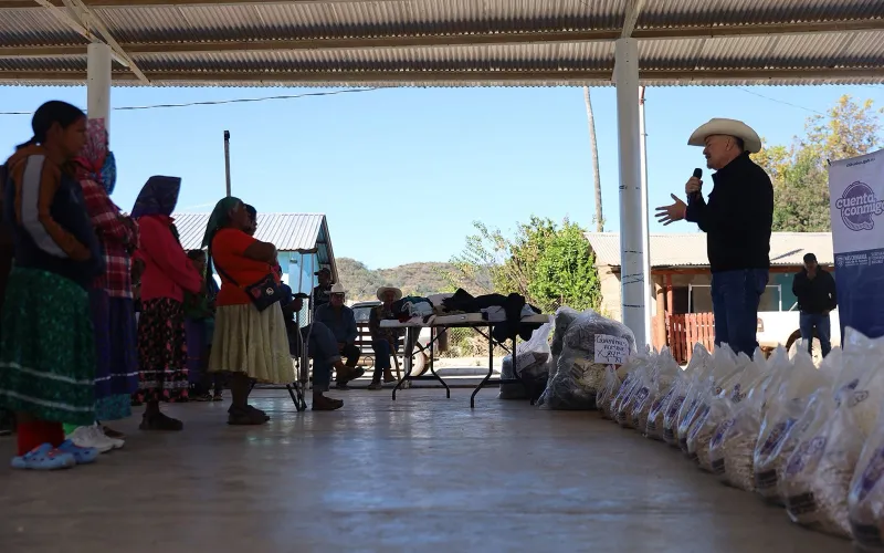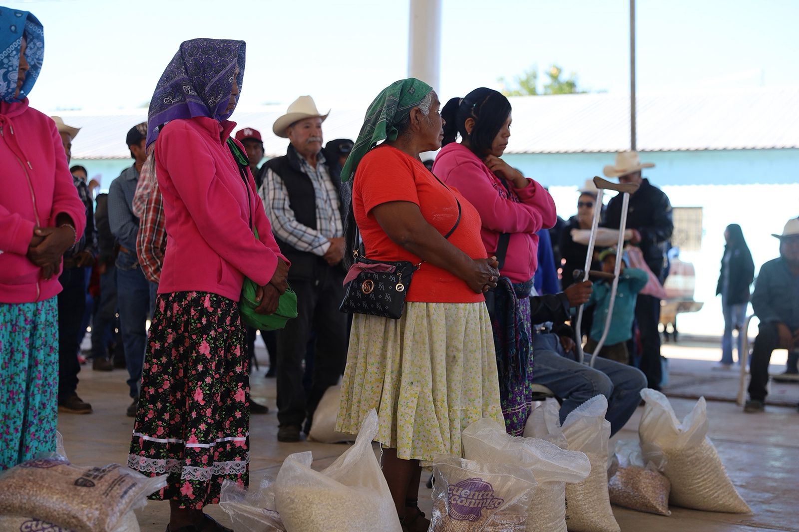El Gobierno del Estado, a través de la Secretaría de Pueblos y Comunidades Indígenas (SPyCI), repartió seis toneladas de granos divididas en 300 paquetes de maíz y frijol, así como 300 chamarras, a igual número de familias de Guazapares.
