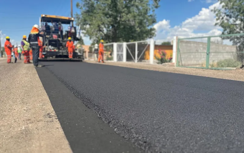 Las labores en curso comprenden bacheo superficial en tramos aislados, fresado, colocación de geotextil, tendido de carpeta asfáltica y señalamiento horizontal a lo largo de la vía.