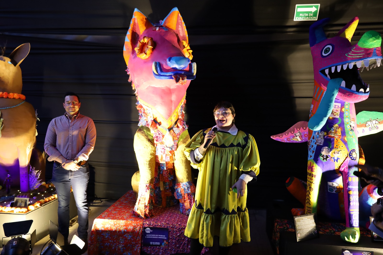 El recorrido estuvo acompañado por perros xoloitzcuintles, figuras elaboradas por trabajadores de diversas dependencias estatales, entre ellas la Oficina de la Gubernatura, la Secretaría de Seguridad Pública del Estado, Desarrollo Urbano y Ecología, Turismo, Obras Públicas, Función Pública y Pueblos y Comunidades Indígenas, entre otras.